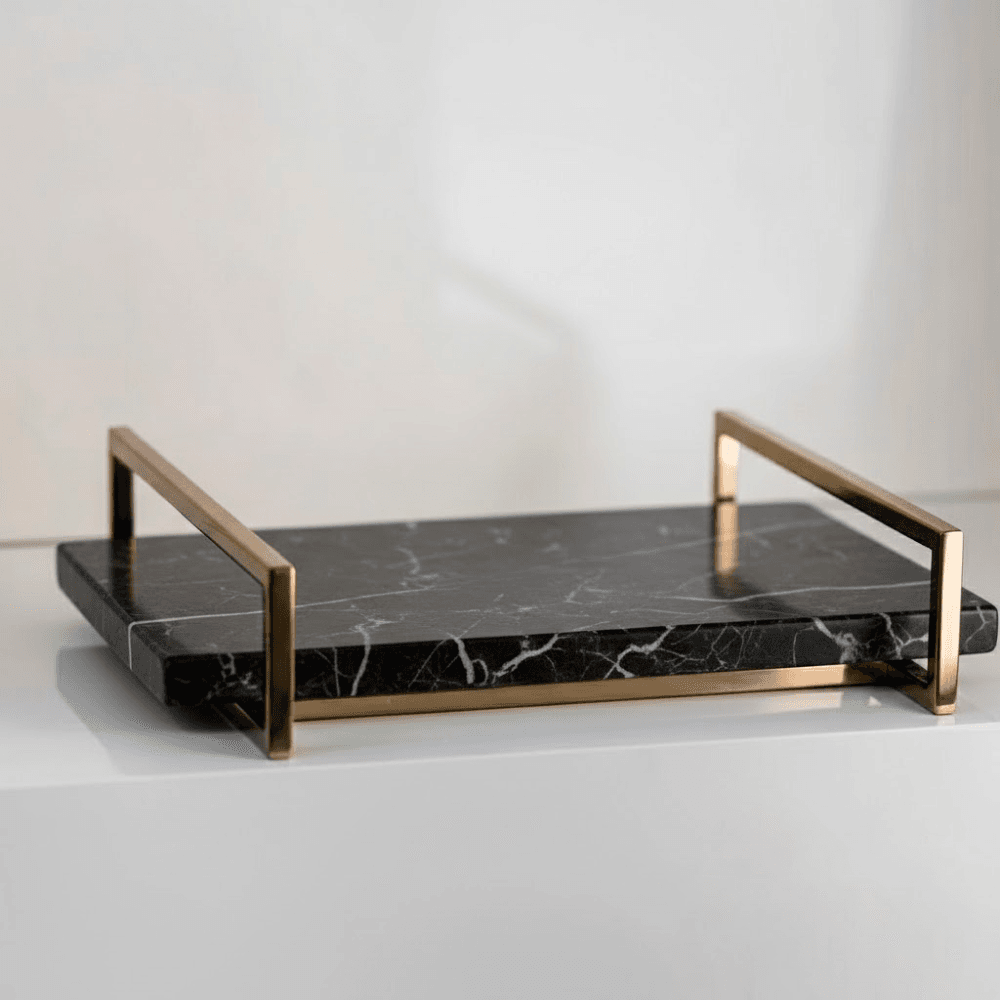 Um objeto de arte. A Bandeja Giverny é realmente uma obra de arte. O design elegante, autoral e exclusivo, os metais trabalhados e a qualidade dos materias são as principais características que a fazem receber tal título. Desenvolvida no Mármore Nero Marquina e com detalhe em metal aço inox dourado, é uma peça feita para ser eterna e passar de geração para geração.
