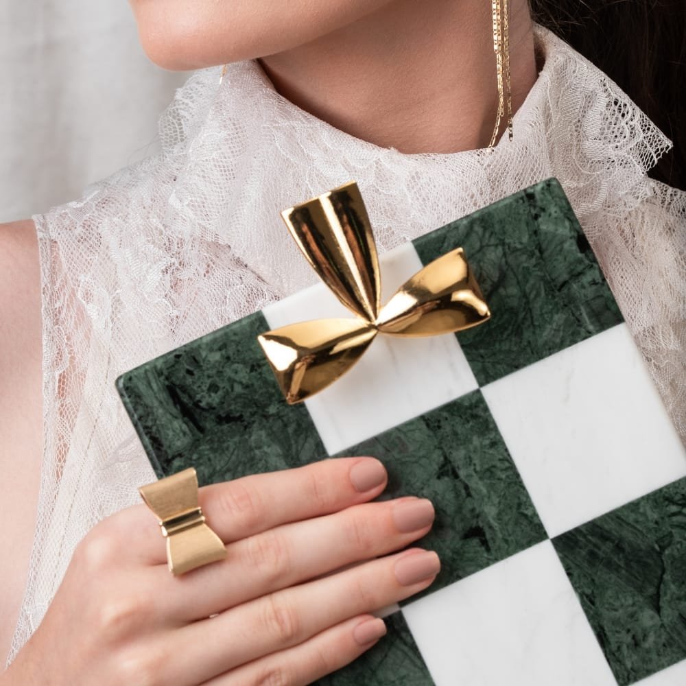 As alças em formato de laços, assinados pela designer Tati K., trazem o toque final: um detalhe escultural que combina delicadeza e força, traduzindo a sensibilidade da coleção.