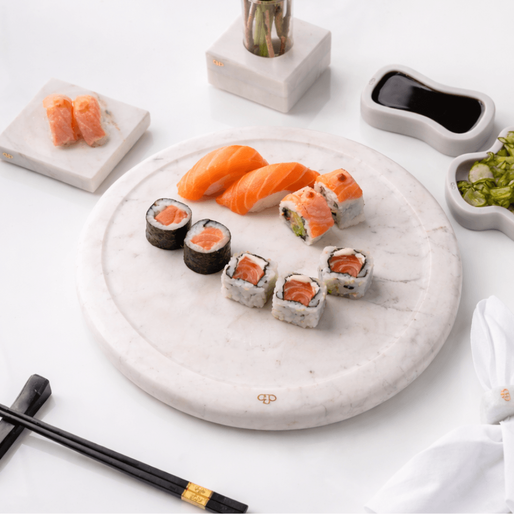A bandeja Momentos em mármore Branco Paraná traz modernidade à sua mesa, com um toque único de exclusividade.