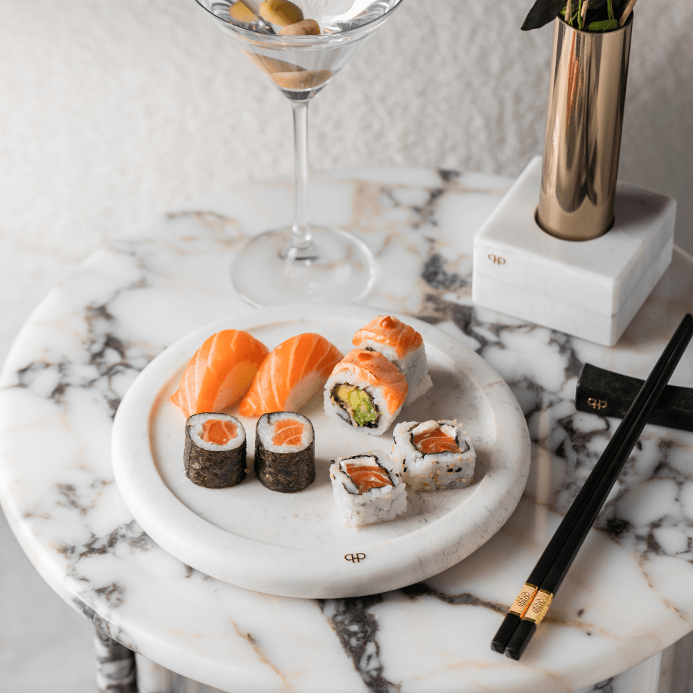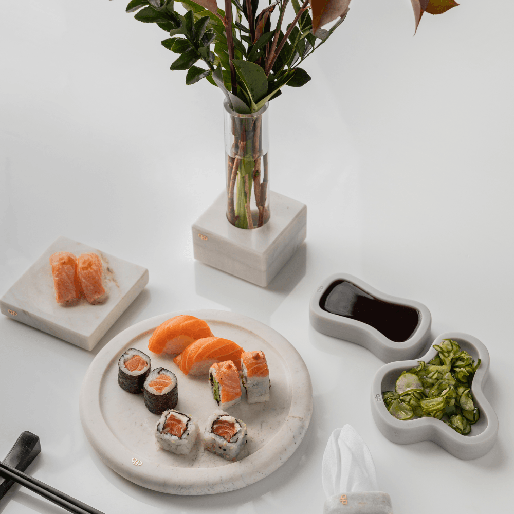 A bandeja Momentos em mármore Branco Paraná traz modernidade à sua mesa, com um toque único de exclusividade.