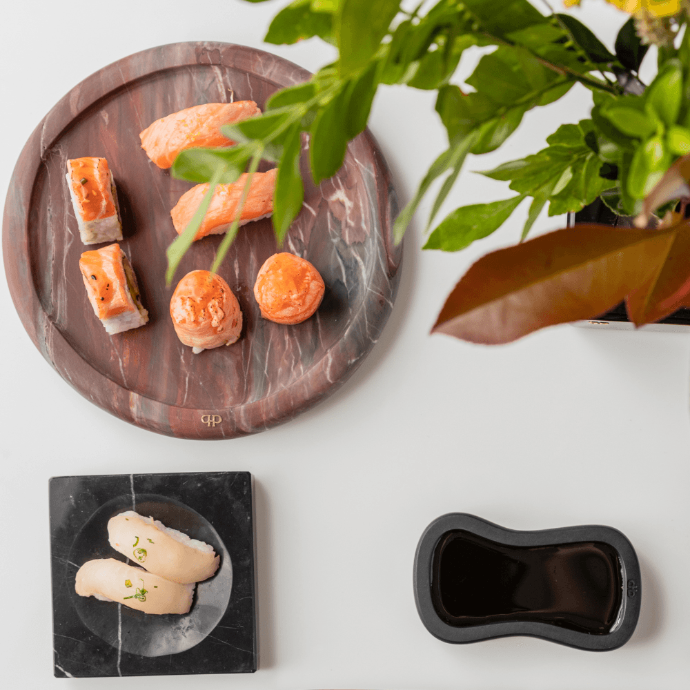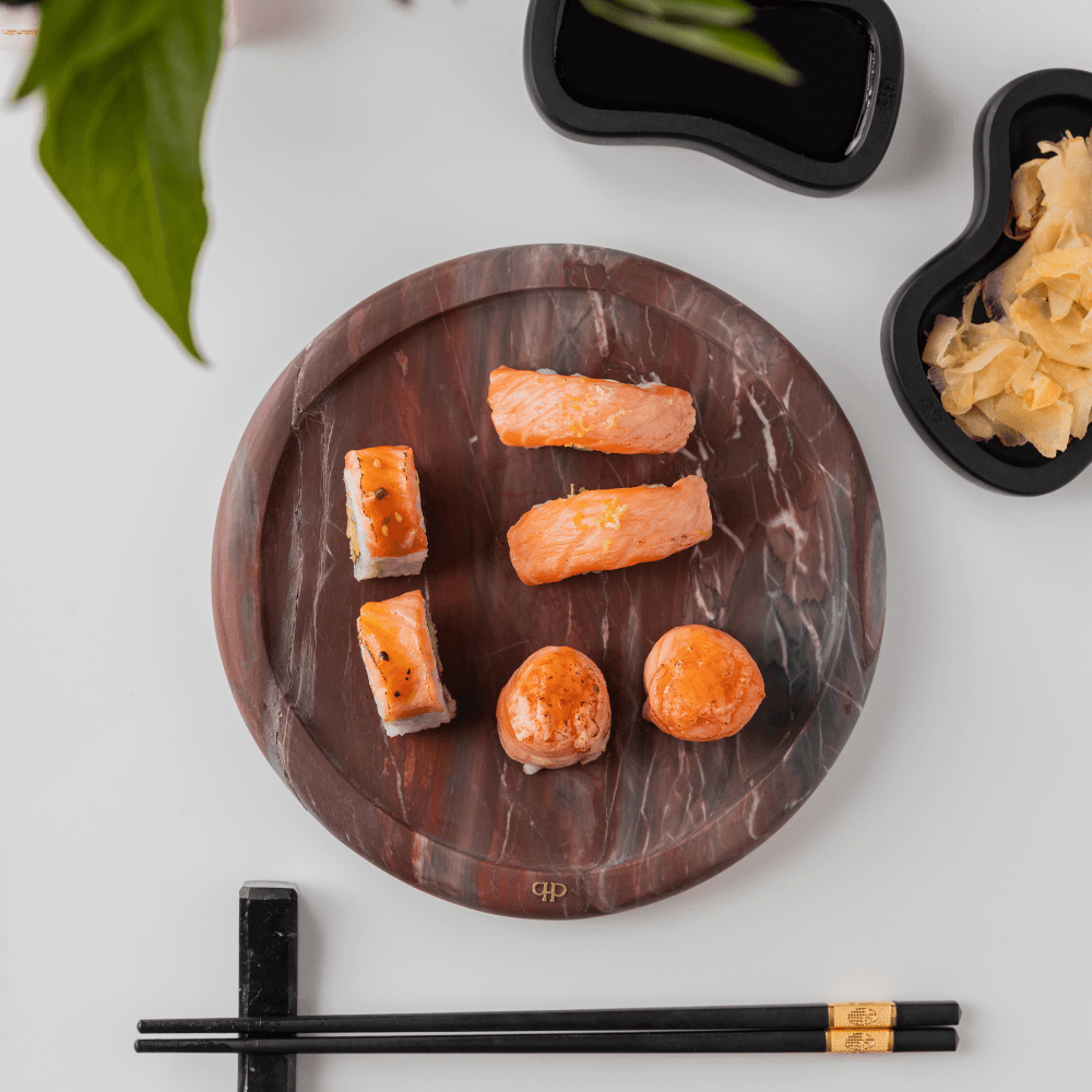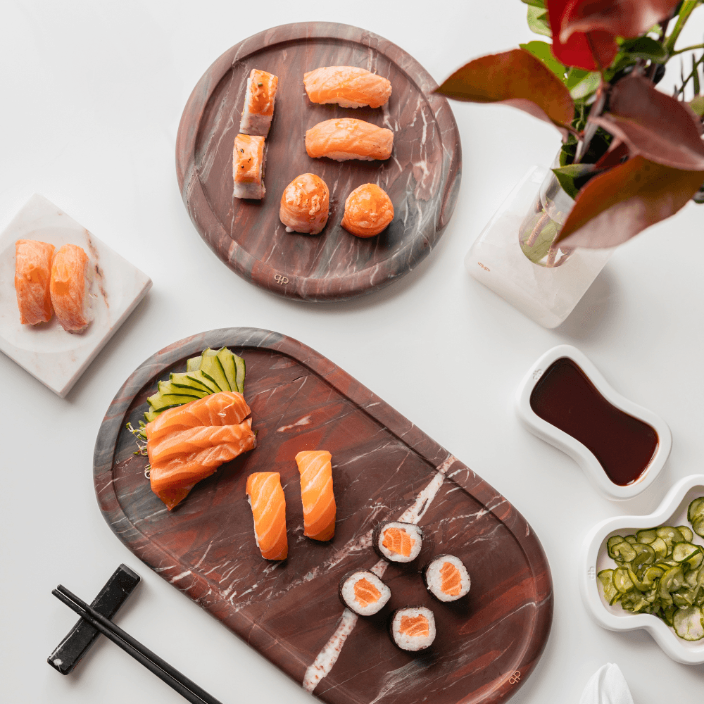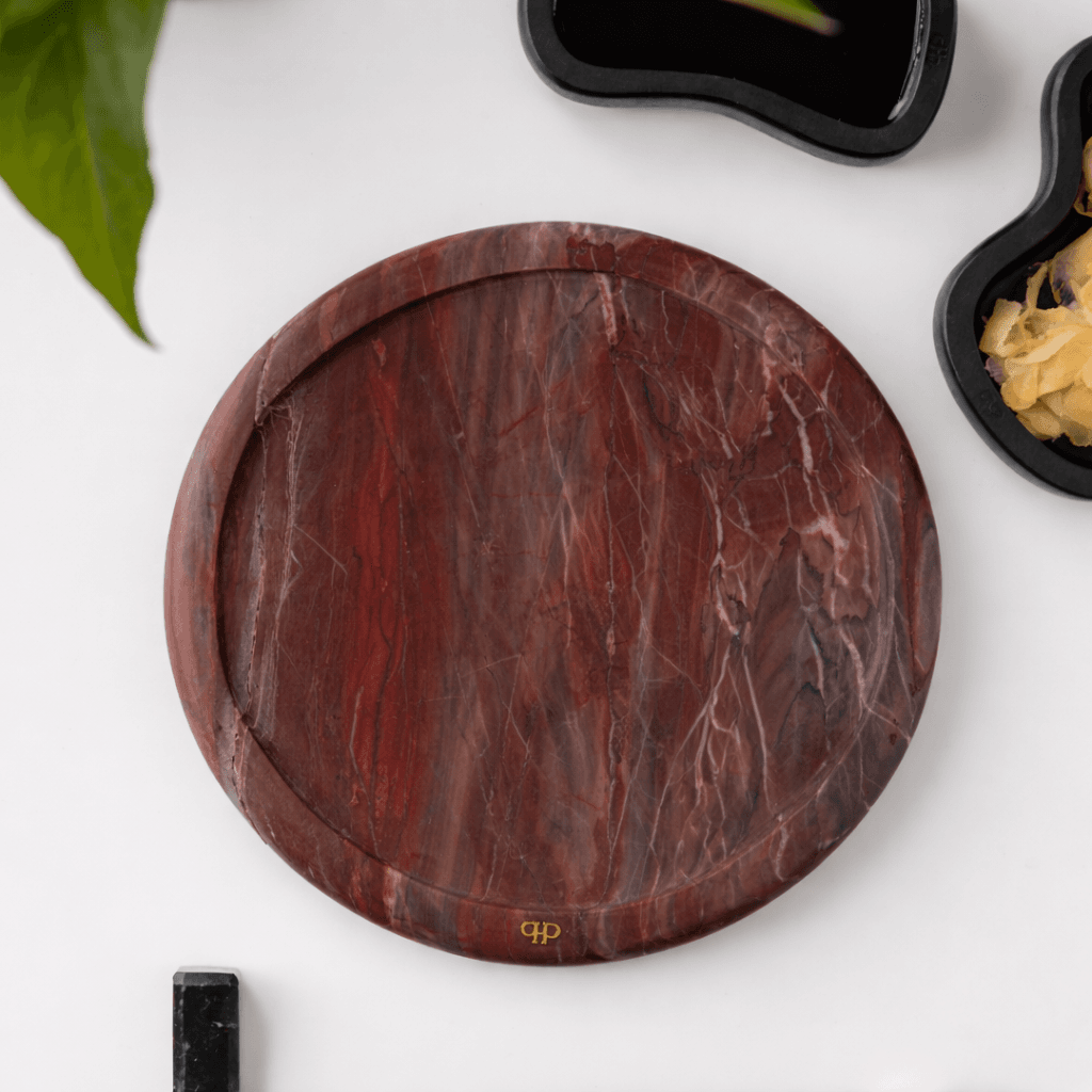 A bandeja Momentos em mármore Napoleão Bordeaux traz modernidade à sua mesa, com um toque único de exclusividade.
