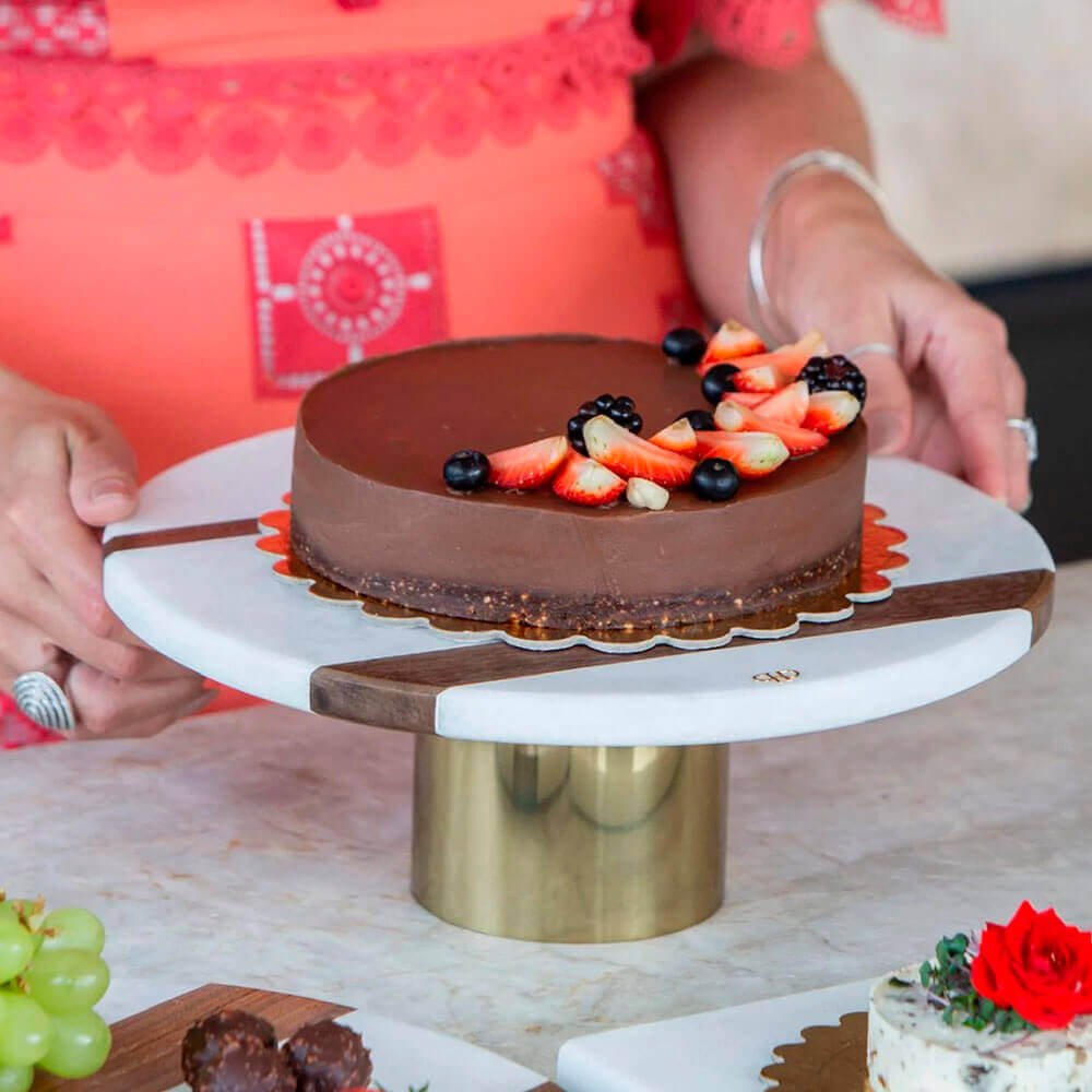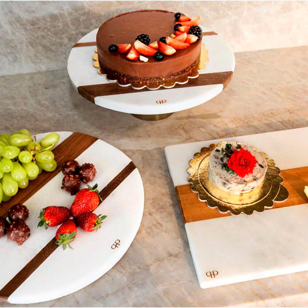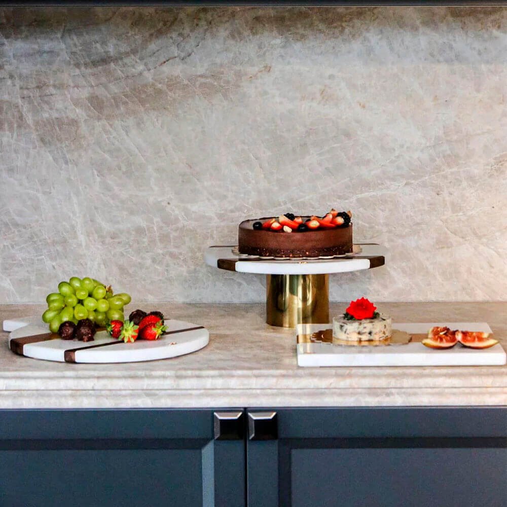 Boleira desenvolvida no mármore Branco Moura com listra em madeira.