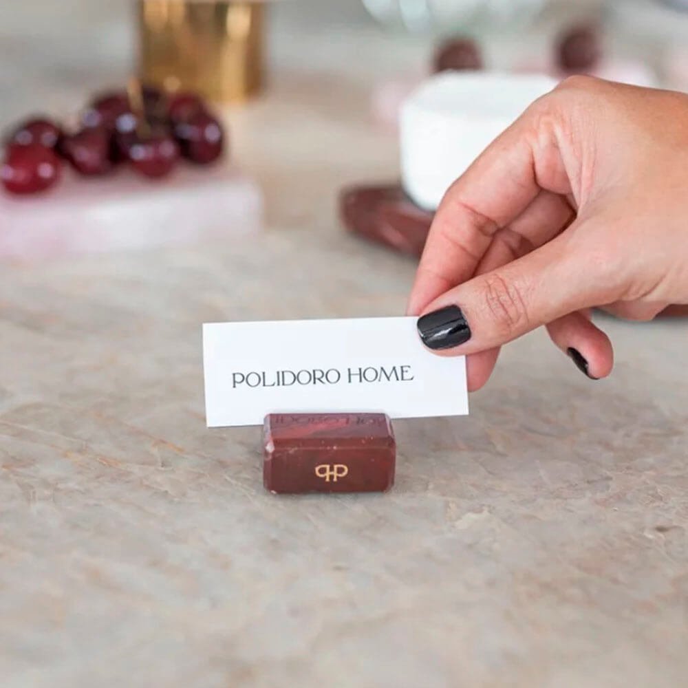 Desenvolvido no Mármore Napoleão Bordeaux, o placement é perfeito para dar o toque final na mesa. Você pode usá-lo para marcar os lugares, colocar frases e deixar a recepção mais charmosa e personalizada.