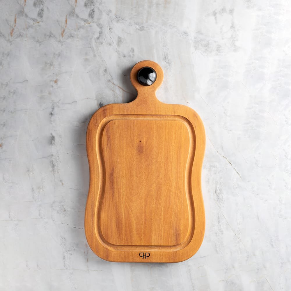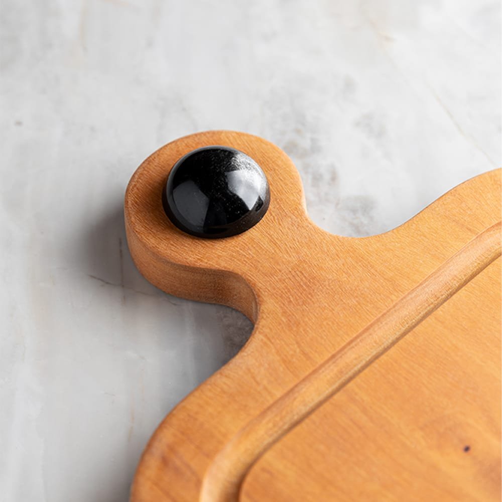 Desenhada à mão, com madeira nobre e acabamento com esfera em Obsidiana Negra, nossa tábua foi pensada especialmente para churrascos e aperitivos, elevando ainda mais suas experiências com o que há de mais especial na arte de servir.