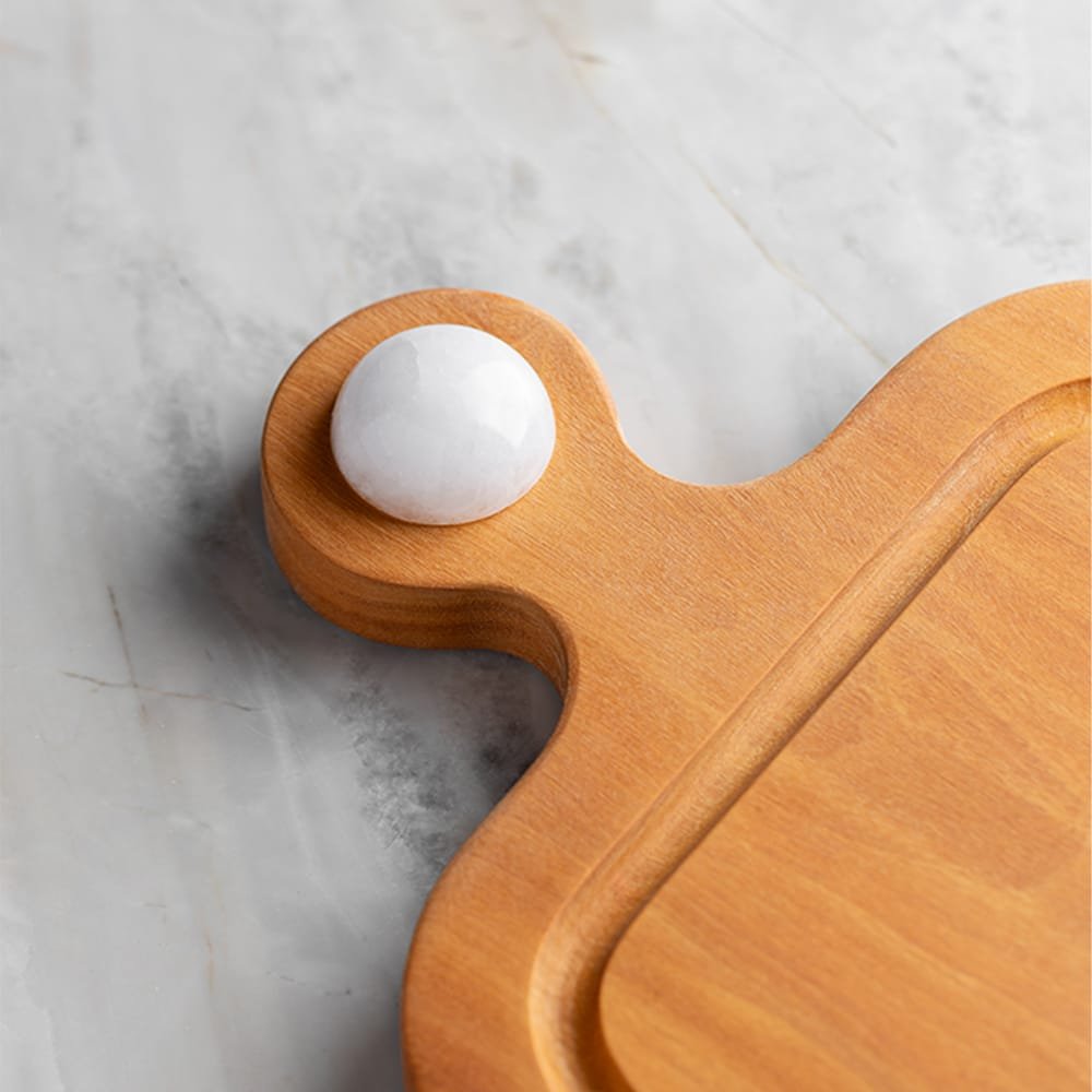 Desenhada à mão, com madeira nobre e acabamento com esfera em Quartzo Branco, nossa tábua foi pensada especialmente para churrascos e aperitivos, elevando ainda mais suas experiências com o que há de mais especial na arte de servir.